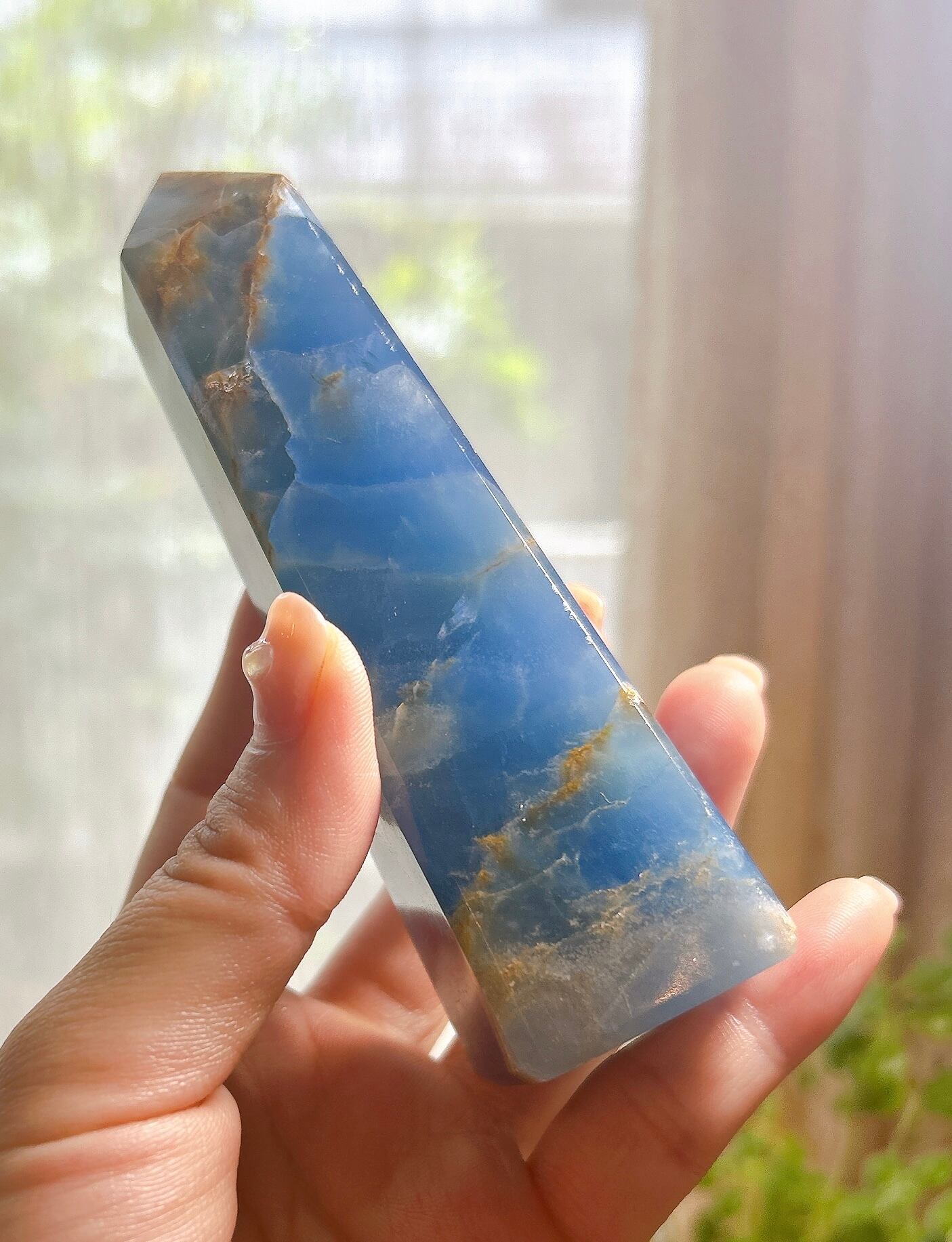 トップの部分には、茶色の瑪瑙層が濃いめに入り、面によって表情の違う瑪瑙層が楽しめる個体になっています。