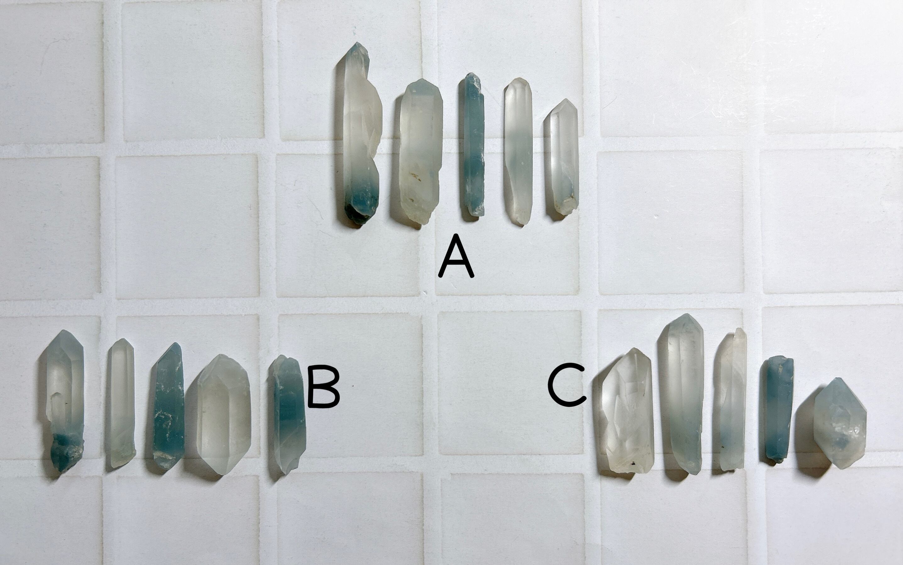 この石の色は、ストロンチウムと銅由来のもので水晶が熱によって金属結合を起こし、